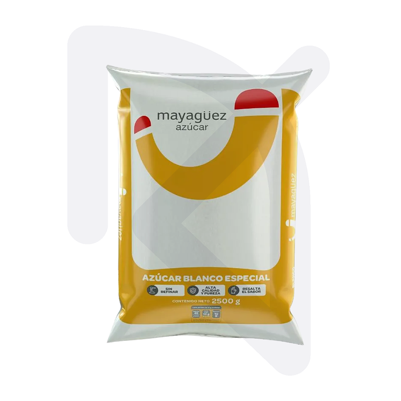 Azúcar blanca Mayagüez 2.5 kg, refinada y de grano uniforme, ideal para bebidas, repostería y uso diario en hogar o negocio.