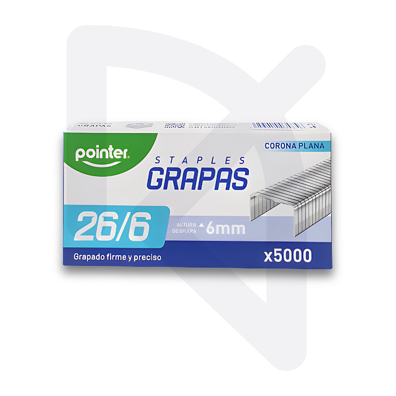 Las Grapas Galvanizadas 26/6 Pointer ofrecen una sujeción fuerte y duradera gracias a su acabado galvanizado que previene la oxidación. Son ideales para engrapar documentos en oficina, colegio o uso personal, asegurando un cierre firme sin romper el papel. Su tamaño estándar 26/6 garantiza compatibilidad con la mayoría de cosedoras. La caja por 500 unidades brinda rendimiento prolongado y excelente relación calidad-precio, convirtiéndolas en un suministro esencial en cualquier espacio de trabajo.