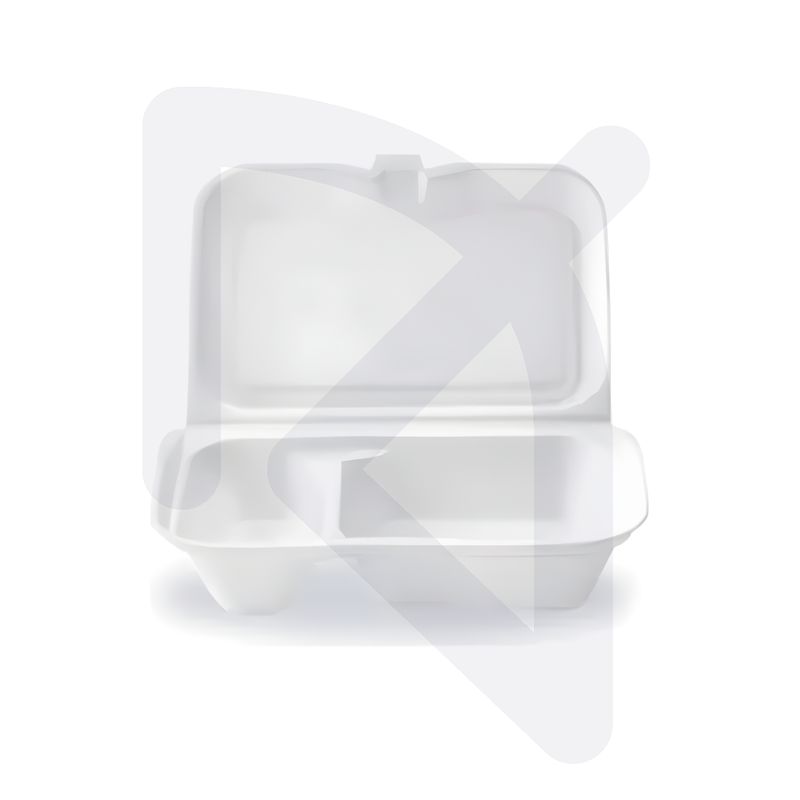 Portacomida espumado J2 blanco con 2 divisiones, más grueso y resistente. Ideal para domicilios y alimentos calientes.