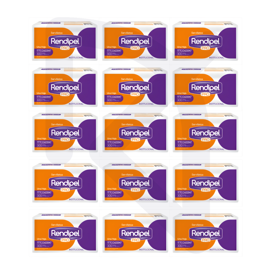 Servilletas Rendipel dobles 300 unidades, paquete x15, absorción eficiente para hogar y negocio.